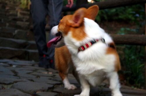 早く来て。 というのをうまく収められた気がするので周知させていただきます。 それにも関わらず後ろの背景に溶けているご主人はのっそり歩いてるのまで表現できている気がします。 コーギーさんもかなり横顔もいいところですが、満面の笑みであるということ…
